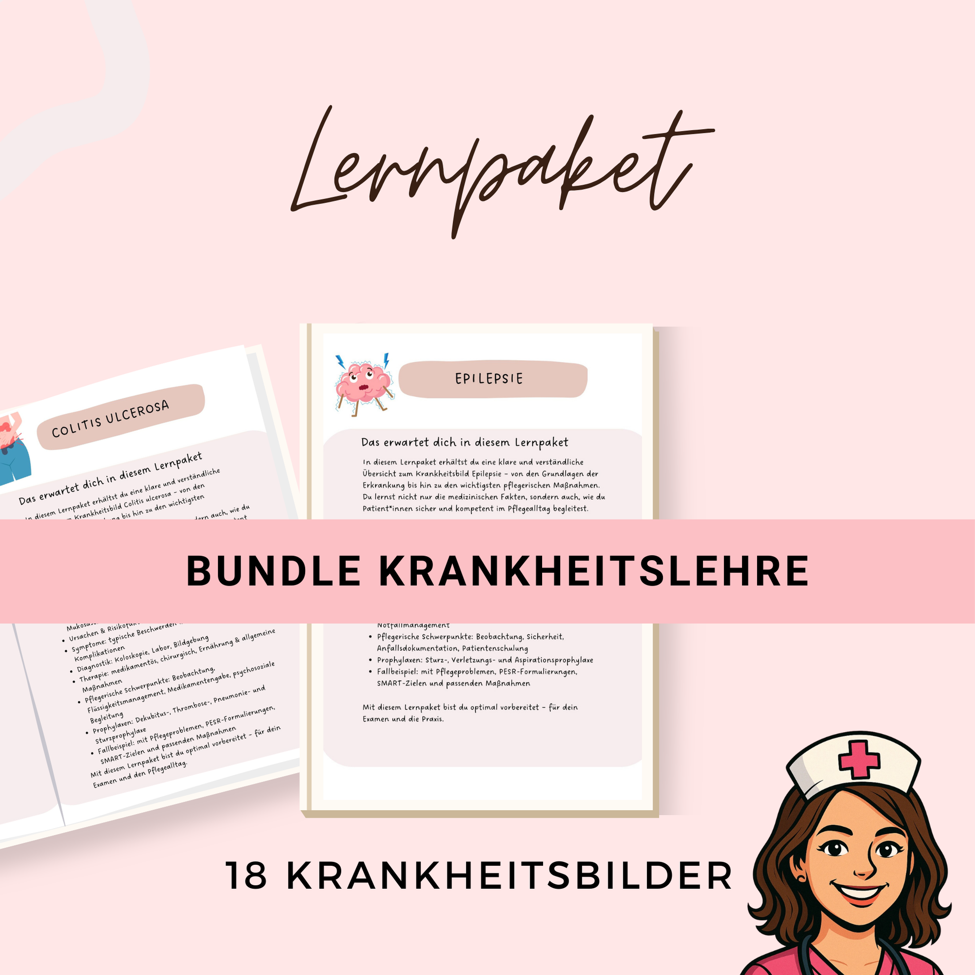 250 Seiten Krankheitslehre BUNDLE XXL - 18 Krankheitsbilder mit u.a. Diagnostik, Therapie und pflegerischem Schwerpunkt - für Pflegeazubis
